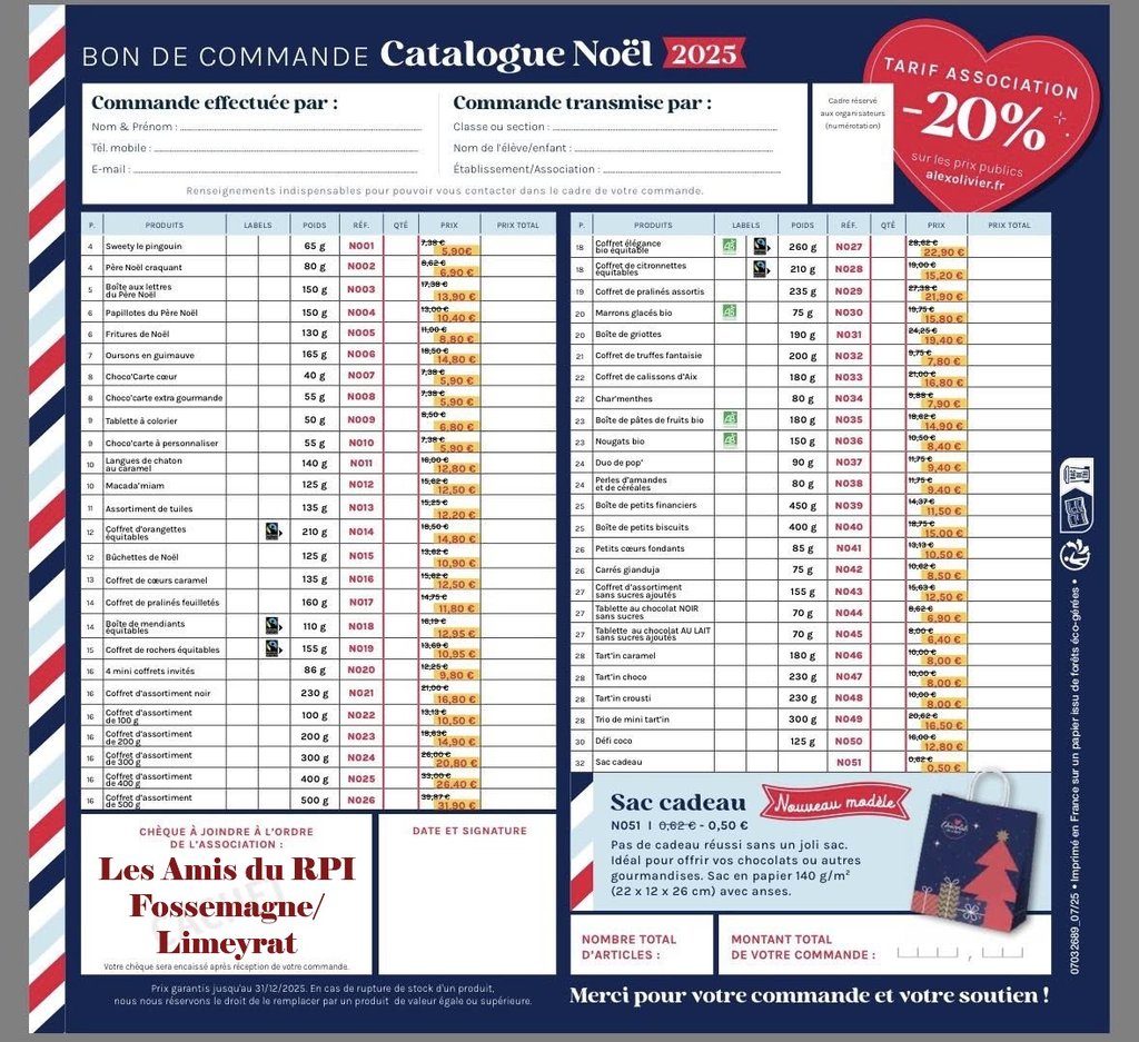 Vous souhaitez participer ? Renvoyez-nous vos bons de commande par mail à lesamisdurpi24210@gmail.com avant le 14 novembre 2025. Nous réceptionnerons vos produits dans les écoles, et vous les distribuerons par la suite.