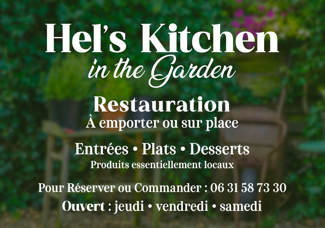 Depuis le 2 août 2025, une nouvelle aventure gourmande saisonnière a vu le jour : Hel’s Kitchen in the Garden. Installé dans le jardin d’Hélène, au 2 rue d’Abzac, 24210 Limeyrat, ce lieu singulier mêle la chaleur d’un accueil à domicile à la qualité d’une cuisine professionnelle. Les clients peuvent désormais commander des plats à emporter, ou s’installer sur place pour déguster des mets savoureux, dans une ambiance bucolique et détendue.